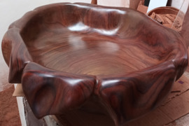 Išskirtinė, rankomis išdrožta praustuvė iš retaus Filipinų geležies medžio – magkuño, garsėjančio savo neįtikėtinu kietumu, atsparumu drėgmei ir ilgaamžiškumu. Kiekviena medžio linija ir banga natūraliai pabrėžia organišką formą, todėl ši praustuvė tampa ne tik funkcionaliu vonios kambario elementu, bet ir meno kūriniu.