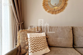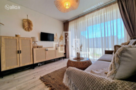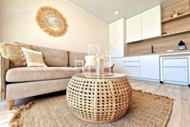Apartamentuose sukurtas bohemiškas pajūrio interjeras, išsiskiriantis natūralaus ratano detalėmis bei šviesiomis spalvomis. Aukštos kokybės baldai, nestandartiniai sprendimai virtuvės zonoje („išvažiuojamas“ valgomojo stalas), kas didina bendrą erdvę. Čia rasite kavos aparatą, Air Fryer skrudintuvą, šaldytuvą, bevielį dulkių siurblį, TV, bevielį internetą, lygintuvą, terasoje - lauko baldus ir lauko šildytuvą.