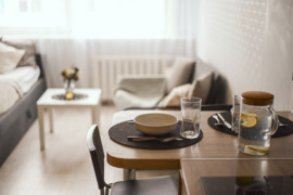 ☑ Parduodamas su baldais ir buitine technika – bute yra funkcionalūs Ikea baldai ir visa reikalinga buitinė technika.