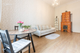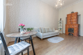 - Cozy and cute 1-room apartment for rent. In the Old Town, V. Šopeno st. - Suitable for those who like to live in the rhythm of the city and enjoy all the city's advantages. - The apartment is ready and can be moved in NOW. - Fully furnished, with furniture and household appliances (washing machine, oven, hob, refrigerator). The apartment is on the second floor of a house of ancient architecture. The apartment is decorated with a Renaissance-style balcony, exclusive brick shoulders and high ceilings decorated with ancient ornaments. A great opportunity to live in the center of Vilnius. LAYOUT: - Hallway - Kitchenette - Living room and sleeping area combined with furniture of the same style - Bathroom (bathtub, WC, sink) - Windows oriented to the central city street - The apartment has a basement EQUIPMENT - The apartment is neat, recently renovated, maintaining the architectural spirit characteristic of the Old Town - High ceilings with decorative elements. - Large windows - Working wood burning stove (fireplace) - Flooring: parquet HEATING: Gas, autonomous PARKING: Cars are parked in the closed inner courtyard of the house LOCATION: You can reach the Town Hall Square on foot in just a few minutes -- Offer no. in Ober-Haus webpage www.ober-haus.lt/OH468854