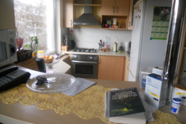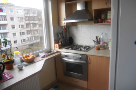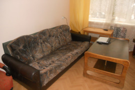 Kambarys- tvarkingas, su baldais: sofa lova,spinta,stalas.Balkonas.