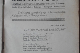 Kita | 1939 m. Nr. 7-8, 12; 1940 m. Nr. 2 25x17 labai retas antikvarinis-kolekcinis mėnesinis iliustruotas Lietuvos moksleivių žurnalas, ėjęs 1937–1940 m. Kaune. Leido Lietuvių mokytojų tautininkų daktaro Jono Basanavičiaus sąjunga. Spausdino Vilties spaustuvė Kaune. Išėjo 42 numeriai. Svarstė jaunimo socializacijos problemas, rūpinosi moksleivių švietimo, ugdymo, kultūros klausimais, rašė apie moksleivių organizaciją veiklą, skelbdavo rašinių ir kiti konkursų. V po 5 €Be tarpininkų išparduodama asmeninės bibliotekos didelė kolekcija: dalinai jau paskelbti (Alio > Registruotas vartotojas > profilis; Skelbiu.lt > visi pardavėjo skelbimai), antikvariniai-kolekciniai, religiniai, retro ir kiti daiktai, įvairios tematikos, leidimo metų, vertės, kalbų, komplektacijos knygos, laikraščiai bei žurnalai, filatelijos kolekcijos ir kt.Susidomėjusiems siūloma susisiekti telefonu, pateikti pageidavimus ir knygos aprašyme įrašytą katalogo numerį. Romualdas. Tel.: +37068702873