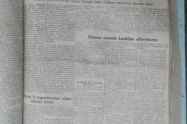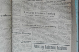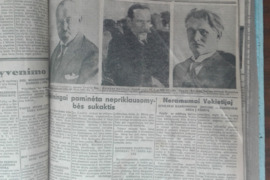 Kita | 1566. MŪSŲ LAIKRAŠTIS 1938 m. 4-50 48x32 įrištas komplektas, kai kurie lapai turi pastebimų dėvėjimo ir/ar amžiaus žymių. „Mūsų laikraštis“ retas antikvarinis-kolekcinis savaitraštis, ėjęs 1928–1940 m. Kaune. Leido Katalikų veikimo centras. Spausdino Spindulio spaustuvė bei „Žaibo“ spaustuvė Kaune. Tiražas 87 000 egz. (1939 m.). Rašė apie ekonomiką, politiką, švietimą, kultūrą, religiją, katalikų spaudą ir kita. Su pastebimomis dėvėjimo ir/ar amžiaus žymėmis. po 3 € 1566a. "MŪSŲ LAIKRAŠČIO" PRIEDAI 1939 m. Nr. 12, 13, 15, 18, 19; 20, 21, 22, 24, 50 48x32 po 2 €Be tarpininkų išparduodama asmeninės bibliotekos didelė kolekcija: dalinai jau paskelbti (Alio > Registruotas vartotojas > profilis; Skelbiu.lt > visi pardavėjo skelbimai), antikvariniai-kolekciniai, religiniai, retro ir kiti daiktai, įvairios tematikos, leidimo metų, vertės, kalbų, komplektacijos knygos, laikraščiai bei žurnalai, filatelijos kolekcijos ir kt.Susidomėjusiems siūloma susisiekti telefonu, pateikti pageidavimus ir knygos aprašyme įrašytą katalogo numerį. Romualdas. Tel.: +37068702873