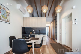 * Jaukus, nestandartinių erdvių butas, aukštomis lubomis, langai orientuoti į dvi puses;