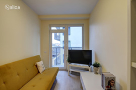 The apartment has all the necessary household appliances (refrigerator, stove, microwave, washing machine, etc.). Tenants will not even have to worry about an iron, dryer, vacuum cleaner... The hallway has a very comfortable wardrobe and additional cabinets, and in the living room you will find a chest of drawers, a table, a cabinet and a fold-out sofa. The kitchen is corner, which will provide additional comfort. The bedroom is equipped with a very comfortable wardrobe. Also, a cozy large balcony with outdoor furniture will allow you to enjoy the good weather in the warm season.