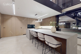 - Aukšta ir graži Svetainė su virtuvės zona – šviesi, su erdviu išėjimu į terasą