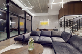 - Aukšta ir graži Svetainė su virtuvės zona – šviesi, su erdviu išėjimu į terasą