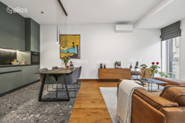 •Newly furnished, exclusive 2-room apartment for sale on Aukštaičių g., Paupys, Vilnius. • A special offer for you – this apartment will impress and will not leave anyone indifferent. • The apartment is located in perhaps the most beautiful Paupys district, on the very edge of the Old Town, designed by architect Vytenis Gerliakas. • Individually furnished designer interior, using only the highest quality materials. Special attention is paid to sound insulation, which is equivalent to class A. • This is a unique opportunity to live in the newly reborn Paupys district, surrounded by nature. The project is characterized by exceptional luxury and solid neighborhood. When you go for a walk, you will be delighted by perennial trees, and your ears will be pleasantly pleased by the murmuring Vilnelė River. • This apartment will appeal to those looking for the highest quality and luxury. FEATURES: • Modern classic interior. • The apartment is fully furnished with the highest quality finishing materials. • Oak floors with underfloor heating. • There are spacious parking spaces and bicycle storage facilities under the entire house (can be purchased additionally). This apartment does not have a parking space, but you can buy one from Darnu Group, neighbors or rent one. • In just a few minutes you will reach Užupis Angel. • There are bicycle paths nearby, and a sports club is nearby. LAYOUT Convenient and rational layout. The living room is connected to the kitchen and dining area. Spacious bedroom. Bathroom: bathtub, shower, sink, WC. Spacious hallway. Classic loggia-type balcony. GENERAL INFORMATION: • Total area: 56.,05 sq. m. • Address: Aukštaičių g. 10. • Year of construction: 2020. • Floor: 4/5. • Number of rooms: 2. • Heating: central-collector floor (adjustable). • Possibility to purchase an underground parking space (~30,000 Eur) from neighbors already living there. • Security: the territory of the house is monitored by video cameras, a fire alarm system is installed. • Ventilation: recuperation system. • Air conditioner installed. • Fiber optic internet. • Flooring: natural oak, high-quality tiles. • Windows: two-chamber, made of natural glued wood. • Exterior doors: armored, with a double lock. • Interior doors: natural wood, according to individual order. • Neat staircase. • Schindler elevator with descent to the parking space. • Low-rise construction, closed courtyard. • The apartment is sold with furniture and all built-in household appliances. LOCATION: • Strategically convenient location, convenient access by public transport and private car. • Quiet neighbors, quiet environment. • Near a public transport stop. • Nearby restaurants, cafes, beauty salons, hairdressers. -- Offer no. in Ober-Haus webpage www.ober-haus.lt/OH503135