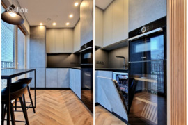 • Pilnai įrengta virtuvė: indukcinė kaitlentė, orkaitė, šaldytuvas, indaplovė