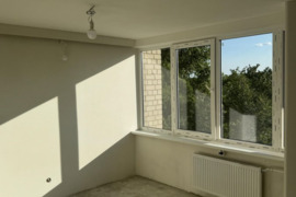 Svetainė, miegamasis ir koridorius išglaistyti.