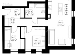 - svetainė su virtuve - 27,42 kv.m- miegamasis - 11,83kv.m.