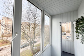 Didelis įstiklintas balkonas – puiki vieta rytinei kavai ar poilsiui po darbo.