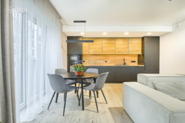 Totally furnished, modern 3-room apartment with a balcony is available for sale in Markučiai, on Manufaktūrų Street, located on the 2nd floor of a 6-story building constructed in 2022, equipped with an elevator. The building features a closed and secure inner courtyard, providing a sense of tranquility and privacy.