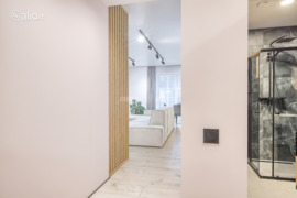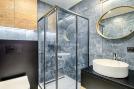The apartment stands out with its excellent furniture and quality household appliances. The master bedroom is equipped with a comfortable bed, there is a children’s or workroom, a cozy living room with a sofa, and a kitchen with all necessary household appliances (refrigerator, oven, stove, extractor fan). There is a dining area, two bathrooms – one with a bathtub, the other with a shower, equipped with a washing machine and dryer, as well as a spacious wardrobe and a convenient hallway.