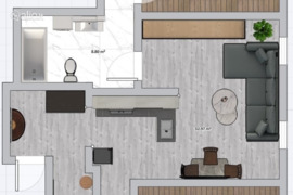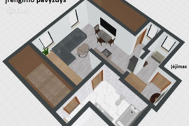 - Butas kompaktiškas, nesudėtingai pertvarkomas, yra vieta įrengti didelį vonios kambarį;