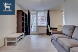 – Virtuvė su integruotais baldais ir buitine technika (šaldytuvas, viryklė, orkaitė)