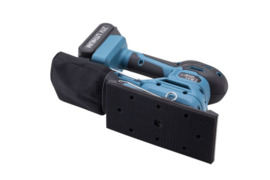 Švitrinį popierių galima keisti be įrankių, diskai tvirtinami „Velcro“ juosta. Komplekte taip pat yra dulkių maišelis, todėl darbas švarus.
