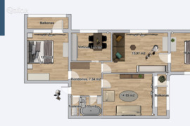 • Patogus išplanavimas – 3 nepereinami kambariai, svetainė, atskira virtuvė;
