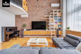 - Lofto interjerą kruopščiai apgalvojo ir kiekvieną namų erdvę išpildė dizainerė, siekiant sukurti išskirtinumo ir ypatingo jaukumo pojūtį. Pasitelktos raudonos sendinto stiliaus klinkerio plytos primena amerikietiškąjį stilių. Interjere atsisakyta tokio tipo erdvėms būdingos šalto industrinio stiliaus ir sukurtas šiuolaikiškas, jaukus ir patogus gyventi šeimyniškas loftas.