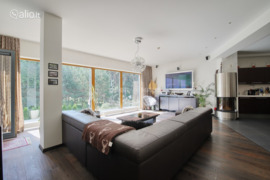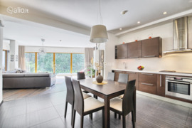 In the greenest area of the city, Valakampiai, a luxurious 4-room apartment is for sale. The apartment has a spacious living room connected to the kitchen and dining room. Access to a spacious balcony is possible from the living room. Three bedrooms. The master bedroom has access to one of the apartment's two junctions and a balcony. Shower cabins and bathtubs in Sannazgi, Villeroy & Boch manufacturer equipment. Timeless solutions were chosen for furnishing the apartment and high-class household appliances were installed. A BOSE sound system is installed in the living room and in the master suite. Floors are heated in kitchens, dining areas and common areas. A beautiful view of the forest opens up through the high showcase windows of the living room and the balcony. The apartment is sold with all furniture and appliances. The house is located in a closed area surrounded by a mature pine forest, has only 3 floors and a solid neighborhood. Valakampiai has maintained the status of a prestigious part of the city for many years. Nearby are two riverside beaches, a sports field in the forest, many walking and cycling paths, restaurants, clinics, schools and universities. Valakampii also has a developed city public transport. There are no traffic jams. Together with the apartment, a spacious garage for two cars, which can accommodate motorcycles, is sold for an additional price. The price of the garage is €80,000.