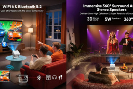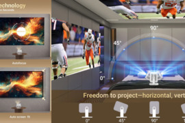 - ŽIŪRĖKITE MĖGSTAMĄ TURINĮ BET KURIOJE PADĖTYJE IR ANT BET KOKIO PAVIRŠIAUS! NET JEI NĖRA LAISVOS SIENOS, TAI NE BĖDA – PROJEKTORIAUS KAMPĄ GALIMA REGULIOTI 180°, TODĖL VAIZDĄ NESUNKIAI NUKREIPSITE NET Į LUBAS IR MĖGAUKITĖS ŽIŪRĖJIMU GULINT.