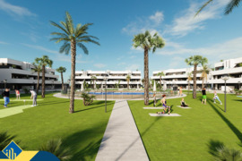 3-jų kambarių apartamentas su bendru baseinu, Ispanijoje, Alicante provincija, Guardamar del Segura mieste, bendras plotas 64 m², 3 kilometrai iki jūros, 32 kilometrai iki Alicante oro uosto. Netoli turto yra parduotuvės, restoranai, autobusų stotelės, degalinės, žalios zonos, kavinės, vaistinės