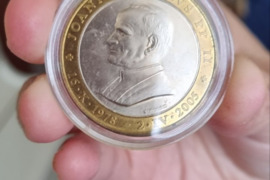 Atminimo medalis Popiežiui Jonui Pauliui II-jam. Nuotraukoje parduodamas medalis plastikinėje kapsulėje. Galimas siuntimas paštu. Kaina sutartinė. Daugiau informacijos telefonu +370 605 45548.