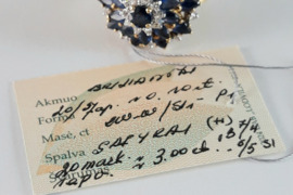 Auksinis žiedas su safyrais ir briliantais, Vilniaus r. sav.