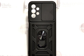 B-Ultra dėklas nugarėlė šarvai Samsung Galaxy A13 mobiliajam telefonui (SM-A135F, SM-A135F/DS, SM-A135M, SM-A137F, SM-A137F/DSN, SM-A137F/DS) juodos spalvos. B-Ultra dėklai pasižymi B-Safe dėklų, B-Private dėklų ir B-Hold dėklų savybėmis. Dėklas nugarėlė yra pastiprintas tarsi šarvai ir itin gerai apsaugo. Guminė nugarėlė pagaminta iš vientiso itin kokybiškos gumos lydinio kuris nėra dažytas, todėl yra labai patvarus, nesibraižo, nekeičia spalvos, nenusitrina, neišsitampo. Ant nugarėlės pritvirtintas metalinis žiedas. Palikus užlenktą žiedą, dėklas nugarėlė gali būti su telefonu tvirtinama prie magnetinio auto laikiklio (nereikia papildomo magneto). Atlenkus žiedą, jį galima sukioti 360 laipsnių kampų. Patogu per žiedą įkišti pirštą, kad dėklas su visu telefonu neiškristų iš rankų, arba dėklo nugarėlės pagalba telefoną pastatyti ant stalo. Ant dėklo nugarėlės įtaisytas slankomas skydelis, skirtas kameros blokui uždaryti. Uždarius kamerą, ši apsaugoma nuo dūžių, bei suteikiama daugiau privatumo. Uždarius vartotojas apsaugomas nuo nepageidaujamo gamintojo šnipinėjimo per telefono kamerą. Papildoma apsauga telefono kamerai - kameros bloko plotas nėra tiesiog iškirptas, o pritaikytos atskiros skylutės kiekvienai linzei.