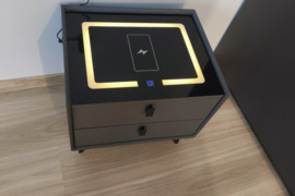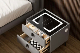3. 2vnt Pilka išmanioji naktinė lentynelė su LED apšvietimu,2stalčiai,spintelė svetainei/miegamajam,Naktinis staliukas,Kompaktiška,Stilingas naktinis staliukas,USB,maitinama lempa. Abu už 220€