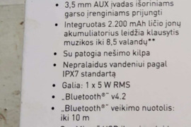 Kolonėlės, garsiakalbiai| Nešiojama | - Kitas -| Naudotas <br /> Tinka naudoti ir lauke.Sujungus dvi, gaunasi erdvinis garsas nes yraTWS fun-ja.AUX yra5W RMSBaterija 2200mAh veikia iki 8hNepralaidus vandeniui