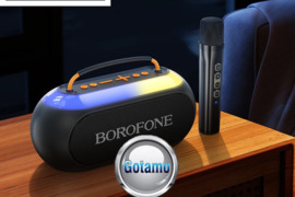 Kolonėlės, garsiakalbiai| Nešiojama | - Kitas -| Naujas <br /> WWW.GOTAMO.LTVisos Bluetooth belaidės kolonėlės :https://gotamo.lt/bluetooth-belaides-koloneles* * * * * * * * * *Nešiojama kolonėlė garsiakalbis Borofone Wireless Karaoke juodos spalvos. Kolonėlė su karaoke funkcija - į komplektą įeina bevielis mikrofonas. Kolonėlės viršuje įtaisyta LED juosta, šviečianti kintančiomis spalvomis. Yra jungtis Micro SD kortelei bei USB atmintinei, tad muziką galima groti iš kortelės ar USB atmintinės. Kolonėlėje yra radijas. Įkrovimui skirta Type-C jungtis, taipogi yra ON/OFF jungiklis, bei patylinimo pagarsinimo mygtukai. Komplekte garsiakalbis, Micro USB laidas baterijos įkrovimui, AUX 3.5mm laidas, bevielis mikrofonas. Garsiakalbio išmatavimai: 274 x 119 x 105 mm.Techninės sąvybės: Bluetooth versija 5.4; Grojimo atstumas nuo telefono 10m; Garsiakalbis 66mm x2, 8W x2; Varža 4 Ohm; Dažnis 50Hz~20Khz; Baterijos talpa kolonėlės 3000mAh, mikrofono 500 mAh; Baterijos įkrovos laikas kolonėlės 3 valandos, mikrofono 1.5 valandos; Grojimo laikas 4 valandos (esant 80% garso), mikrofono naudojimo laikas 25 valandos.* * * * * * * * * *GOTAMO ELEKTRONIKA - tai elektronikos prekių, priedų parduotuvė veikianti nuo 2011 metų. Prekiaujame elektronika, telefonų priedais, kompiuterių priedais, teikiame remonto paslaugas. Klaipėdoje prekių galima įsigyti prekybos salone esančiame Klaipėdos autobusų stotyje, priešais IKI kasas (Priestočio g. 24). Į kitus miestus prekes siunčiame.Visi Gotamo pasiūlymai čia: gotamo.alio.ltwww.gotamo.lt