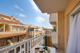 Dviejų kambarių butas arti jūros Torrevieja mieste. 1 miegamasis, 1 vonios kambarys, bendras plotas 51 m2. Tinka pastoviam gyvenimui ir nuomai. Šalia yra visos reikalingos paslaugos. Iki paplūdimio 450 metrų.