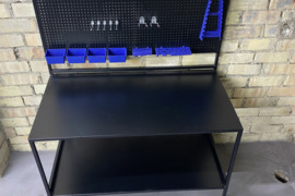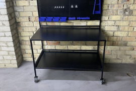Metalinis darbastalis su ratukais ir įrankių laikikliais