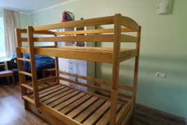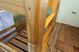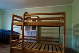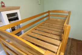 Naudota, puikios būklės.Kokybiškos medžiagos, jejgu daug vietos buste, galima statyti ir kaip atskiras lovas,tikrai ilgai tarnaus. (Jejgu tiks pridėsim ir čiūžinius)