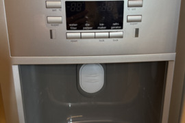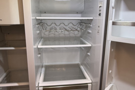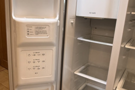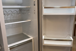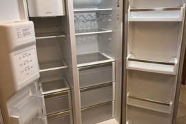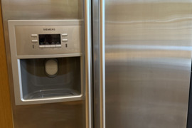 Amerikietiško stiliaus dviduris Siemens Side by Side šaldytuvas. Didelis ledukų gaminimo konteineris, jungiasi tiesiai į vandentiekį. Turi tris funkcijas: šaltas vanduo, ledo kubeliai, smulkintas ledas. Naudotas, yra pabraižymų ir įlenkimų, tačiau veikia visos funkcijos. Išvaizdus, talpus.