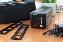 „Plustek OpticFilm 8200i SE“ skaitytuvas: pagrindinis 35 mm juostelių ir skaidrių skenavimo įrenginys.