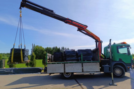 - Vežame blokelius, plytas, šulinio žiedus, mediena, perdengimo plokštes, trinkeles, žemės ūkio technika, cementa, granules, metala, įvairias statybines medžiagas, klinkeri, čerpes, didmaišius, įvairius birius krovinius (žvyras, smėlis, skalda, juodžemis ir ta