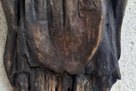 Vienoje foto nusifotografavom su skulptūra kartu, kad suprastumėte kokio ji dydžio, maždaug 70cm. Ir ši skulptūra esu tikras vaizduoja šventą Joną Nepomuką.