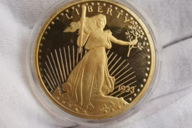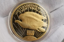 Parduodu garsios St. Gaudenso 20 USD vertės auksinio dvigubo erelio monetos kopija. Autentiškų monetų, o ne kopijų, buvo nukaldinta daugiau nei 400 tūkst. tačiau visos, išskyrus 13 vnt. monetų, datuojamų 1933 m., buvo išlydytos o iš tų 13 tik viena pateko į apyvartą. Tiesą sakant, JAV kongresas išleido įstatymą, draudžianti gyventojams turėti 1933 m. datuojamas aukso monetas, nes prezidentas Ruzveltas pasirašė įsakymą, kad nuo 1933 metų buvo uždrausta gyventojams turėti aukso.
