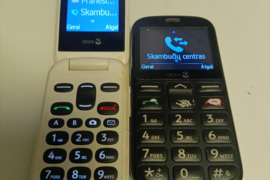 Geri Doro telefonai ,2 sim ,kalbos ,sim ,po 15€, baltame atlenkiamas doro tik nėra galinio dangtelio, viskas veikia be defektu
