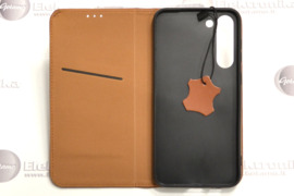Gotamo Vintage natūralios odos magnetiškai uždaromi dėklai Samsung Galaxy S23+ (S23 Plus) mobiliajam telefonui (SM-S916B, SM-S916B/DS, SM-S916U, SM-S916U1, SM-S916W, SM-S916N, SM-S9160, SM-S916E, SM-S916E/DS). Telefonas tvirtai prisispaudžia prie dėklo viduje esančios silikoninės formos, todėl yra apsaugotas ne tik nuo nusibraižymo, bet ir nuo smūgių. Silikoninėje formoje yra išpūtimai patylinimo ir pagarsinimo mygtukams, įjungimo / išjungimo mygtukui, iškirpimai video kamerai, ausinių jungčiai. Dėklas pagamintas iš itin kokybiškos natūralios odos, paviršius pusiau matinis. Dėklo kraštai apsiūti, patvarūs. Viduje yra kišenėlė atsiskaitymų ar nuolaidų kortelėms. Dėklas uždaromas magnetiškai be liežuvėlio, atrodo solidžiai. Išoriniai dėklo išmatavimai: 160 x 81 x 15 mm.