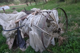 Grėbiamoji, pritaikyta mini traktoriukui. Apie 2,5 m grėbimo plotis. Buvo naudojama 6ha dydžio ūkyje, kol buvo karvė. Valdoma diržu, vieno žmogaus iš traktoriuko. Gali sugrėbti ir didelius plotus. Sugrėbdavo apie porą hektarų, savo laiku. Ratai nusiima, tilptų į ilgintą busiką. Ratai apie 1,5m diametro. Visi grėblių dantys vietoje.