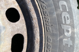 R-15| Plotis: 185| Aukštis: 65| Kiekis: 4| Naudotos <br /> Naudoti štampuoti ratai su padangomis. Dvi padangos dar vienai sezonui tinkamos. Kaina derinama.