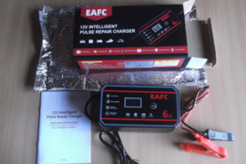 Eafc| Naujas <br /> EAFC 12V.6A.Naujas. DYDIS 14.6x8.1x6.0 cm. NAUJO MODELIO EAFC yra žinomas ir patikimas prekės ženklas, kurį mėgsta visame pasaulyje už dizaina patikimuma ir tiksluma. Daugkartinė apsauga – išmanusis , Šis 12 V akumuliatoriaus įkroviklis užtikrina maksimalų saugumą ir ilgaamžiškumą. Įmontuotas aušinimo ventiliatorius apsaugo nuo perkaitimo, kad būtų galima saugiau naudoti ilgą laiką. Idealus pasirinkimas saugiam išmaniajam automobilio akumuliatoriaus įkrovikliui6 automatinio įkrovimo režimai – visų tipų transporto priemonėms. Šis 6A išmanusis automobilio akumuliatoriaus įkroviklis automatiškai nustato aplinkos temperatūrą ir perjungia vasaros / žiemos įkrovimą. Yra automobilio (12V 6A), motociklo (1.5A), AGM / kalcio akumuliatoriaus režimai ir specialus akumuliatoriaus taisymo režimas silpniems akumuliatoriams. Puikus AGM GEL LiFePO4 įkroviklis namų ar profesionaliam naudojimui.plėstinis akumuliatoriaus taisymo režimas – atgaivinkite susilpnėjusias baterijas Impulsų taisymo technologija padeda atkurti sulfatines arba neveikiančias baterijas ir prailginti baterijos tarnavimo laiką.Išmanusis įkrovimas su automatiniu sustabdymu ir LCD ekranu. Mikroprocesoriumi valdomas išmaniajam įkrovimui ir automatiniam išsijungimui, kai visiškai įkrautas. Aiškus LCD rodo įtampą, temperatūrą, įkrovimo srovę ir akumuliatoriaus procentą. Pridedama apsauginė ekrano plėvelė, kad būtų išvengta įbrėžimų. 12v akumuliatoriaus automobilinis įkroviklis, suderinamas su LiFePO4 įkrovikliu 12V automobilių. Pastaba: ekranas padengtas apsaugine plėvele, kurią reikia nuimti.Platus suderinamumas – nuo 2Ah iki 100Ah. Veikia su 12V švino rūgšties, AGM, GEL, WET ir LiFePO4 baterijomis (2Ah-150Ah). 12 voltų akumuliatoriaus įkroviklis tinka lengviesiems automobiliams, sunkvežimiams, motociklams, keturračiams, vejapjovėms, valtims