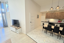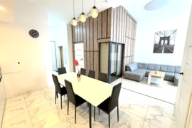 - Butas: 83.14 kv.m. 2 aukšte, didelė, erdvi svetainė sujungta su virtuve ir valgomuoju, prieškambaris, miegamasis, kambarys-darbo kambarys, dušo kabinos ir wc patalpa, erdvus balkonas-lauko terasa ( ~ 10 kv.m.) į vidinę namo pusę, didelė tvarkinga laiptinė, didelis tvarkingas rūsys;
