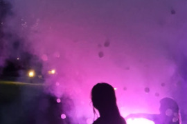 Plius šviesų efektai du prof. šviesų moduliatoriai ant stovo ir dūmų mašina.