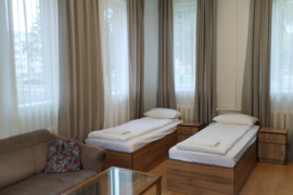Svečių namai Klaipėda INN siūlo 2-, 3- ir 4-vietės kambarius trumpalaikei ir ilgalaikei nuomai darbininkams. Patalpose yra įrengtos virtuvės, skalbimo ir džiovinimo mašinos, patalynė, rankšluosčiai, internetas, televizija, uždaras parkingas. Kaina nuo 12 eurų ilgalaikei nuomai.