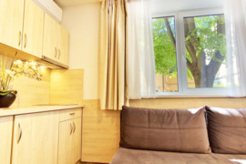 „Home Apart-Hotel“ – tai jauki ir patogi vieta apsistoti pačioje Vilniaus širdyje, adresu V. Vivulskio g. 12B, vos 500 metrų nuo senamiesčio. Čia rasite viską, ko reikia komfortiškam poilsiui – kiekviename numeryje įrengtos mini virtuvėlės su kavos ir arbatos ruošimo rinkiniais, šaldytuvais, virduliais ir stalo įrankiais, o mikrobangų krosnelės patogiai įrengtos kiekviename aukšte. Svečiai gali naudotis 24 valandas per parą veikiančia bendra virtuve, talpinančia iki 12 žmonių, skalbimo ir džiovinimo paslaugomis bei bagažo saugykla. Viešbutyje įrengta vaikų žaidimo erdvė, jaukus žaliuojantis poilsio ir saunos, kurioje galima atsipalaiduoti po dienos darbų ar pažintinių kelionių. Automobiliu atvykstantiems svečiams suteikiamos nemokamos privačios stovėjimo vietos. Vos per kelias minutes pėsčiomis pasieksite parduotuves – IKI (2 min.) ir visą parą veikiančią MAXIMA (5 min.). Pėsčiomis ar trumpu važiavimu lengvai pasieksite žymiausias Vilniaus vietas: Valstybinį Vilniaus Gaono žydų muziejų (850 m), Okupacijų ir laisvės kovų muziejų (1,4 km), Valdovų rūmus ir Prezidentūrą (1,5 km). Geležinkelio ir autobusų stotys yra vos už 2 km, o tarptautinis Vilniaus oro uostas – tik už 4,8 km. Verslo keliautojai patogiai pasieks ir Lietuvos parodų bei kongresų centrą LITEXPO, esantį vos 11 minučių kelio automobiliu. Visą parą dirbantis daugiakalbis (lietuvių, anglų, lenkų, rusų) personalas pasirūpins jūsų poreikiais, suteiks turizmo informaciją ir patars dėl lankytinų vietų – „Home Apart-Hotel“ – puikus pasirinkimas norintiems jaukumo, patogumo ir patrauklios vietos pačiame Vilniaus centre.