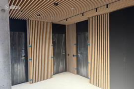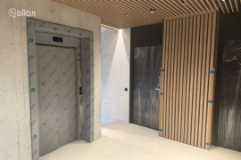 ♦ Laiptinės apdaila - betoniniai laiptai iškloti plytelėmis. Sumontuoti baldai, ažūrinės lubos, turėklai, sienos dažytos arba dekoratyvinis tinkas. Įrengtas laiptinės apšvietimas.